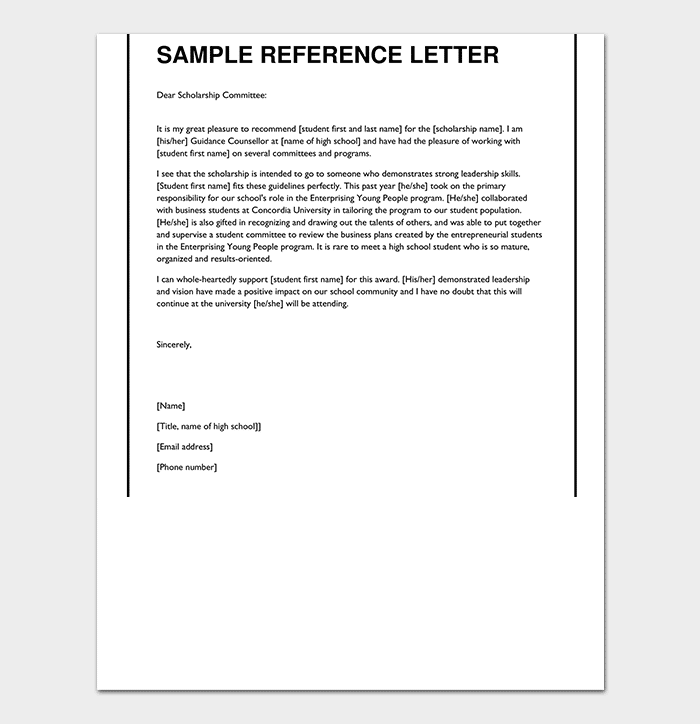 Find out how to ask for and receive great letters of recommendation from valuable references. Tailor this sample to fit your needs. Use this letter of recommendation template to give references to a former student or a former team member. Need a sample letter of recommendation for a fellowship or college program? Here is a sample recommendation letter.